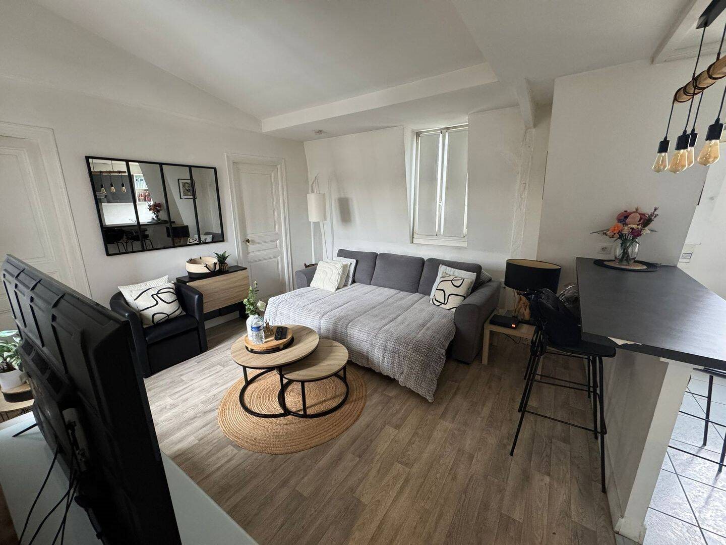 Particulier Loue joli T3 état impeccable, situé en plein centre-ville, rue du Harlay , à 2 pas de la place du marché aux herbes et à 5 mn à pied de la gare. Appartement de 47 m2 (Lc) traversant, très lumineux, vue dégagée, calme et fonctionnel. -Séjour, avec cui...