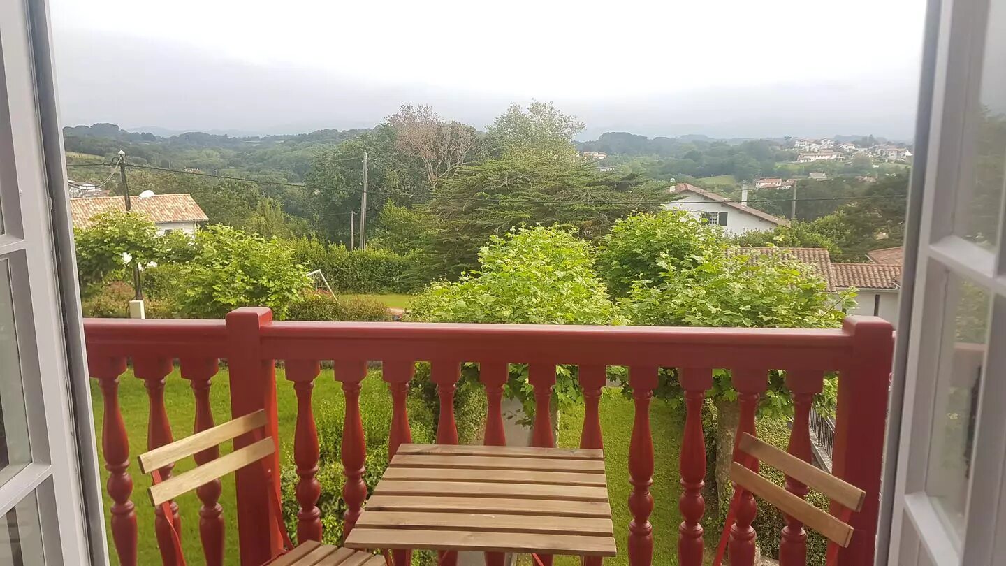 Superbe studio de 30 m2 avec vue sur les Pyrénées à 10 min à pied des plages de Cenitz et Parlementia. Dans une ancienne maison basque de caractère répartie en logement individuel. Meublé et entièrement équipé dont un bureau avec écran Salle d'eau et wc, cuisine équ...