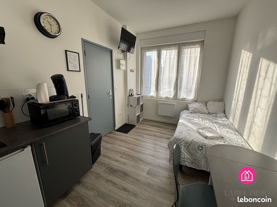L'agence immobilière Label-Immo située sur Valenciennes propose à la location un studio meublé en rez-de-chaussé sur la commune de Raismes . Ce studio parfaitement bien meublé est idéal pour les étudiants ou jeunes actifs : vous êtes à 20 minutes en voiture de Valenciennes et à proximité des axes autoroutiers. Vous pouvez stationner votre voiture dans la rue gratuitement. D'une superficie de 13,94m2 en rez-de-chaussée, il se compose d'une pièce de vie/nuit avec Tv, lit 1 personne, table et chaise, d'un coin cuisine meublée et équipée (réfrigérateur, micro-onde, plaque de cuisson 2 feux, vaisselle et meubles de rangement) et d'une salle d'eau avec douche, lavabo et Wc. Avantages : double vitrage, machine à laver disponible dans les parties communes. Disponible de suite Loyer : 280E/mois Forfait : 100E (eau et électricité) Dépôt de garantie : 280E Frais d'honoraires à la charge du futur locataire : 111,52E (rédaction du bail et état des lieux d'entrée offert) Honoraires de 112 € Ttc à la charge du locataire. Loyer de base 280 €/mois. 100 €/mois de charges forfaitaires. Dépôt de garantie 280 €. Classe énergie C, Classe climat B Montant estimé des dépenses annuelles d'énergie pour un usage standard : entre 420.00 € et 620.00 € sur les années 2021, 2022 et 2023 (abonnements compris). Les informations sur les risques auxquels ce bien est exposé sont disponibles sur le site Géorisques : . Cc Ttc Numéro de mandat : Lieu : Nord (59)