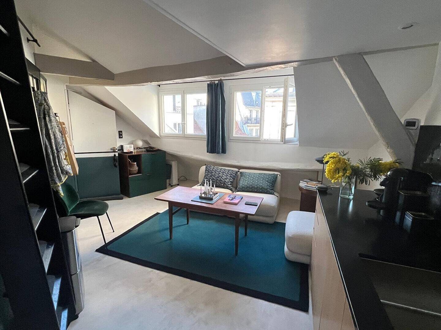 Sentier/Montorgeuil A L'angle de la rue de Cléry et de la rue des petits carreaux, nous vous proposons en exclusivité ,un studio plein de charme, au 5 ème et dernier étage par escalier , comprenant une belle pièce à vivre avec mezzanine, une cuisine ouverte équ...