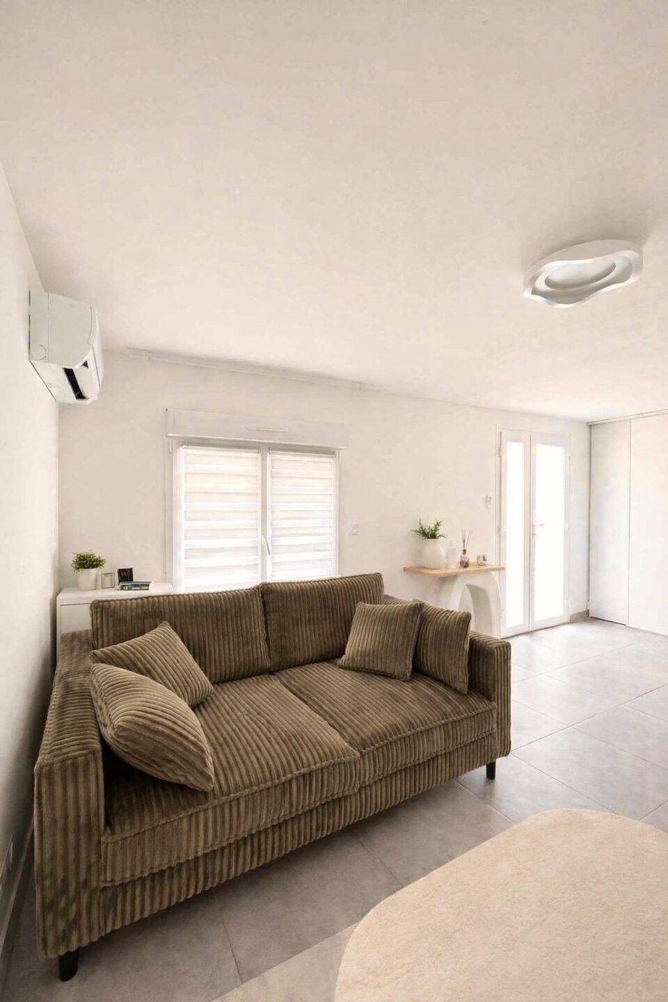 L'appartement se situe au lieu dit les Garrigues côté Saint Aunés, dans un immeuble comprenant 3 appartements, 2 en rez de jardin et un à l'étage. L'appartement est composé d'une entrée avec placard, séjour avec cuisine aménagée et équipée d'une plaque vitrocéramique ...