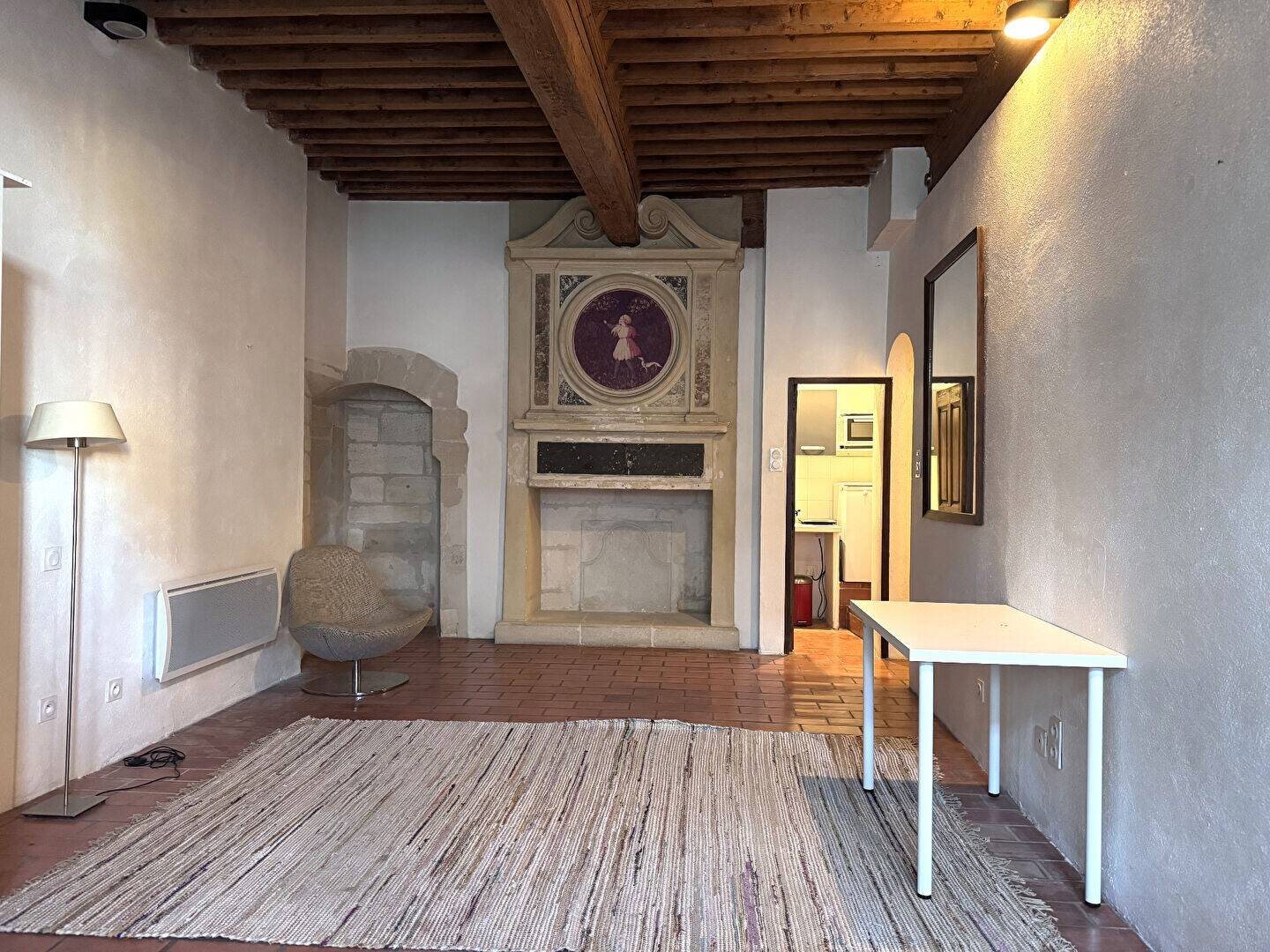 Au coeur du centre historique, dans une ancienne livrée Cardinalice, agréable appartement studio d'environ 37m² habitables avec du cachet situé au 1er étage. Entrée, belle pièce à vivre, kitchenette équipée et salle d'eau avec Wc. Libre de suite.