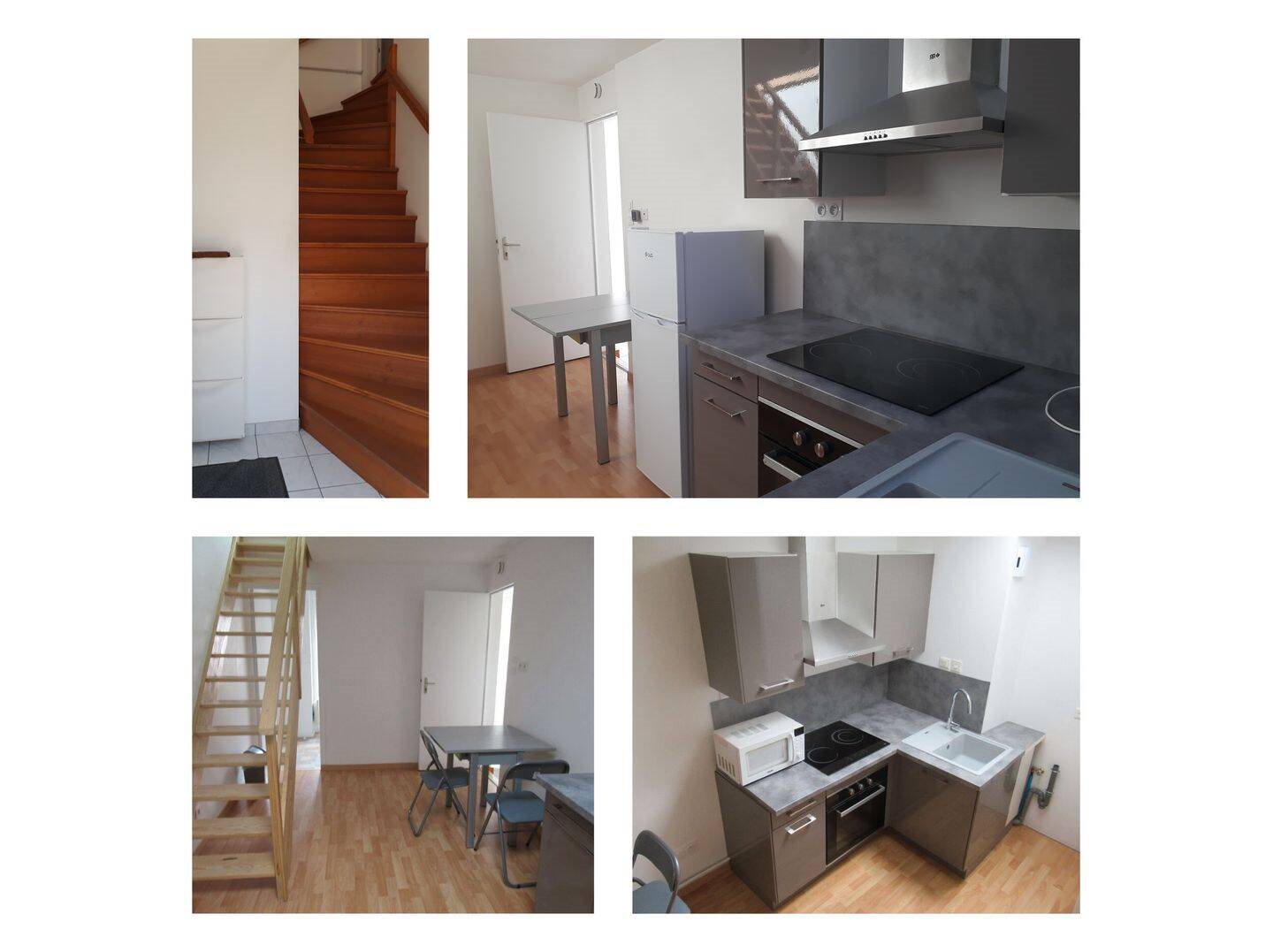 A louer Triplex de 22,80 m2 loi carrez 33 m2 au sol Avec entrée indépendante en Rdc 1 étage pièce de vie avec cuisine aménagée ( four, hotte, plaque vitro, frigo ) salle de bain avec placard, douche et wc. 2 étages une chambre lumineuse sous comble de 15 m2 ...