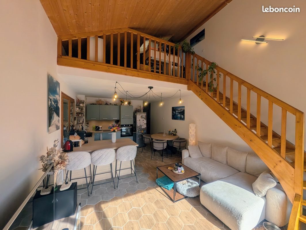Venez découvrir ce bel appartement en duplex, entièrement rénové en 2024, situé sur la commune prisée de Thônes, entre lac et montagnes (15 km d'Annecy, 12 km de La Clusaz et du Grand-Bornand). Il se trouve au bout d'une impasse, sans aucune nuisance sonore, et à proximité directe du centre-ville de Thônes, de son marché et de ses commodités (à environ 200 mètres). Il se situe au 1er étage d'une petite copropriété de 7 logements en R+2 (sans ascenseur). L'appartement, réparti sur une surface de 98 m² au sol (pour 71 m² Carrez), bénéficie d'une triple exposition (Sud / Ouest / Nord) permettant une aération optimale, notamment les soirs d'été. Il se compose de : - R+1 : une entrée avec placard et penderie, desservant un Wc indépendant, une salle de bains fonctionnelle, une chambre avec placard et une cabine avec placard (idéale pour un bureau, une chambre de bébé ou d'enfant). On retrouve enfin un séjour cathédrale lumineux avec cuisine ouverte et équipée, s'ouvrant sur un balcon exposé plein Sud avec vue sur le massif de la Tournette. - R+2 : l'escalier mène à un espace mezzanine, idéal pour un bureau ou un espace de rangement. Celle-Ci dessert une très grande chambre disposant de deux placards coulissants et de deux ouvertures (avec vue sur le clocher de Thônes et les massifs environnants). Cet appartement bénéficie d'un chauffage au sol avec thermostat individuel dans toutes les pièces, d'un grand ballon d'eau chaude (250 litres) et de la fibre optique. Une place de parking extérieure privative ainsi qu'un garage fermé en sous-sol viennent compléter l'ensemble. À noter que le garage possède une belle hauteur de 2,80 mètres, très pratique pour y fixer vélos et skis notamment. Prix de vente : 400 000 € (appartement + garage + stationnement extérieur)