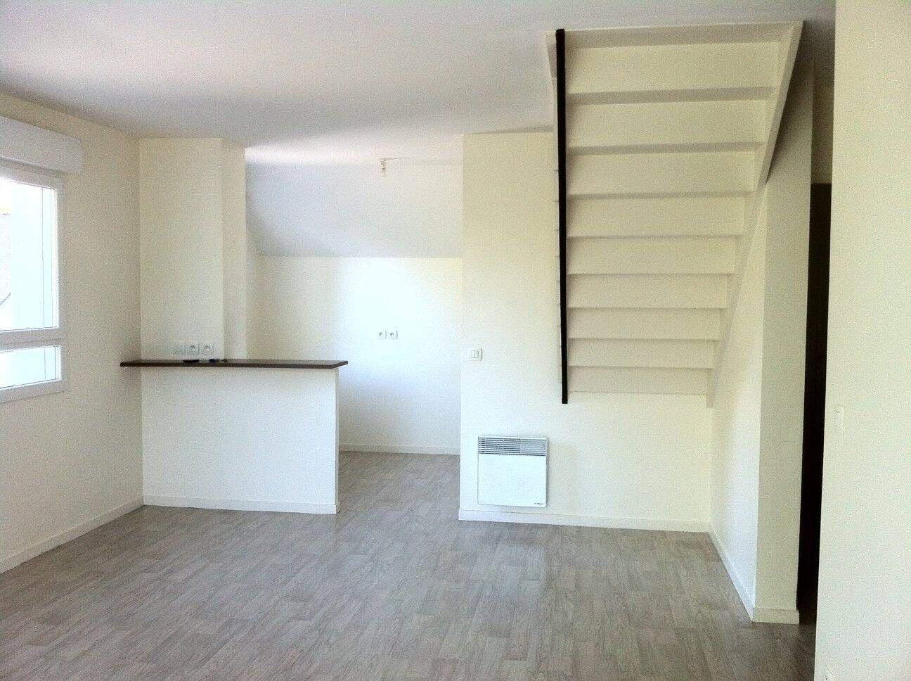 Le bourg à pied pour cet appartement en duplex, au calme, au premier et dernier étage sans ascenseur, comprenant une entrée avec placard et wc, une chambre, une salle de bain, un débarras, un grand séjour donnant sur un balcon lumineux avec vue sur le jardin s...