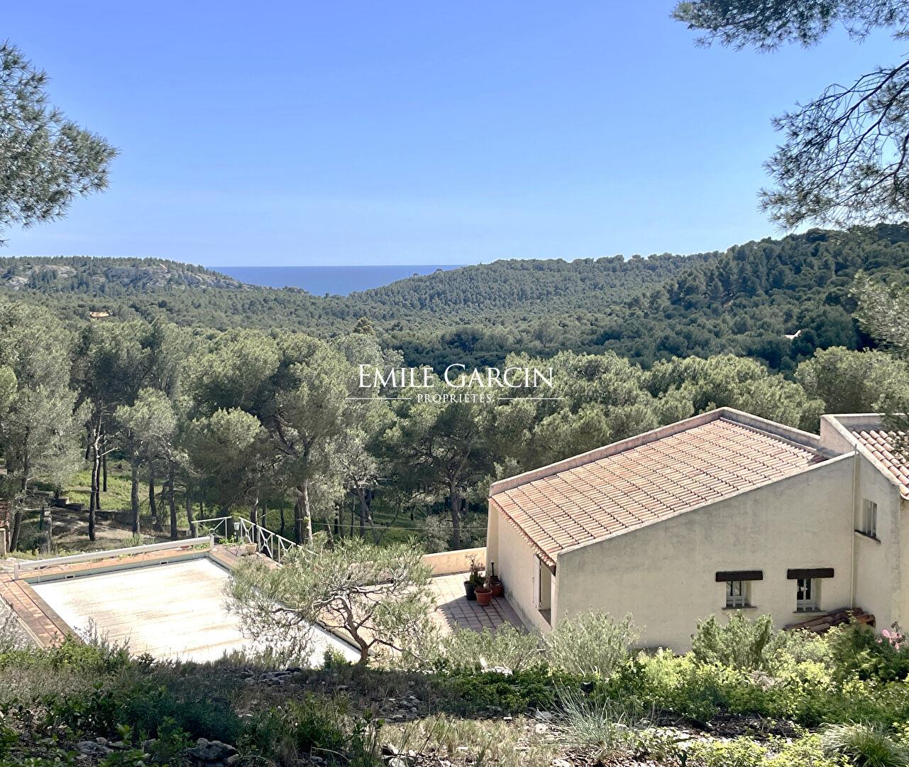 Située à Ensuès-la-Redonne, au coeur de la Côte Bleue, cette villa de charme bénéficie d'un environnement exceptionnel entre pinède et essences méditerranéennes, sur un vaste terrain arboré de 5 700 m² avec vue dégagée sur les pins et aperçu mer. D'une superficie d'environ 130 m², la maison propose un salon lumineux avec cheminée ouvrant sur une terrasse exposée plein sud, une cuisine indépendante, trois chambres, une salle de bain ainsi qu'une grande mezzanine modulable (bureau, chambre supplémentaire ou espace détente). En rez-de-jardin, un sous-sol de 190 m² offre de nombreux espaces : atelier, salle de jeux, rangements et une annexe indépendante de 60 m², idéale pour recevoir famille et amis ou envisager un projet locatif. À l'extérieur, le jardin naturel méditerranéen accueille une piscine 6x12 m, un espace repas convivial avec four à pizza et un garage. Les amoureux de nature et de randonnée apprécieront la proximité immédiate des sentiers du Massif des Calanques d'Ensuès, offrant un cadre de vie rare entre mer et collines.