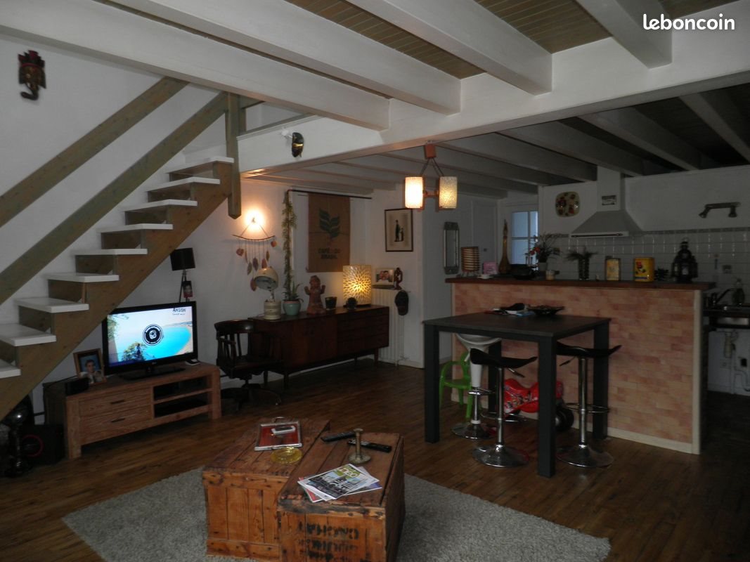 Uplex centre ville de 80 m2, très calme comprenant : Pièce à vivre avec cuisine américaine, wc, réserve. A l'étage3 chambres et salle de bain. Chaudière gaz avec production d'eau chaude. Loyer 520 euros + 17 euros(ordures ménagères) Profil obligatoire Garantie Visale obligatoire.