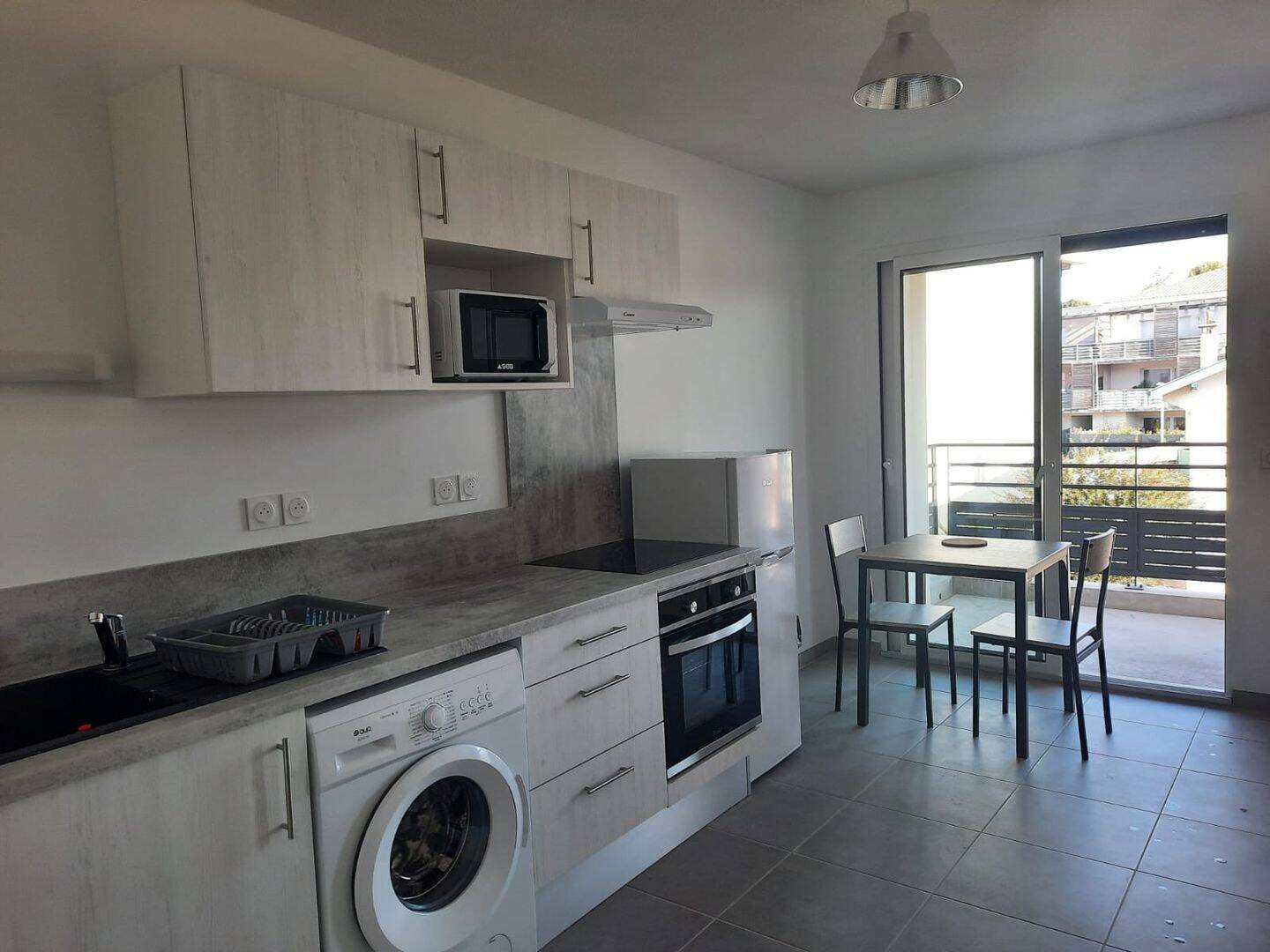 Centre Parentis en Born loue T1 meublé avec loggia dans petite résidence de 2024, proche de toutes commodités et commerces.