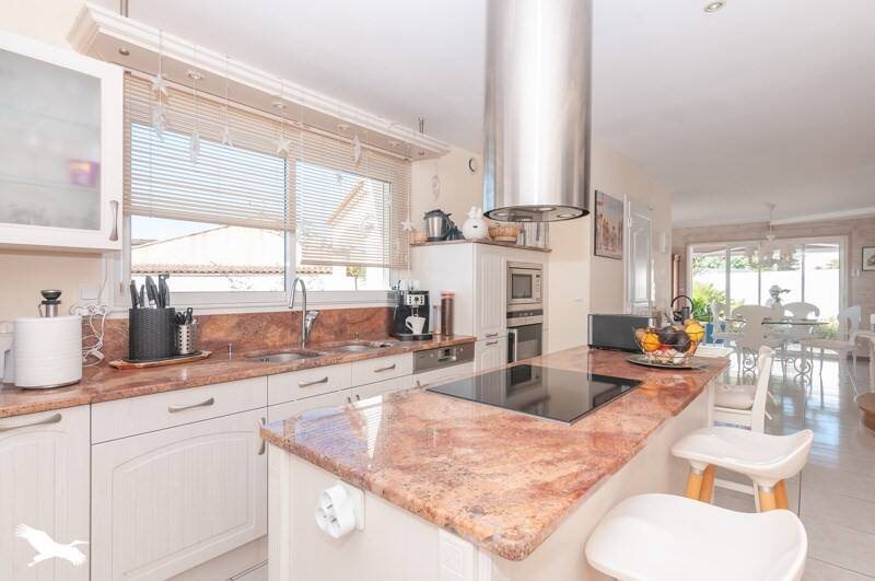 Secteur prisé de Sérignan. Villa 3 chambres de plus de 120 m² habitables en R+1, sur une spacieuse parcelle. Au Rdc : suite parentale, salon séjour, cuisine, wc et cellier. Tout le rdc ouvre sur le superbe jardin arboré avec piscine au sel A l'étage : 2 chambres avec salle d'eau wc. Maison lumineuse et agréable. Clim gainable.