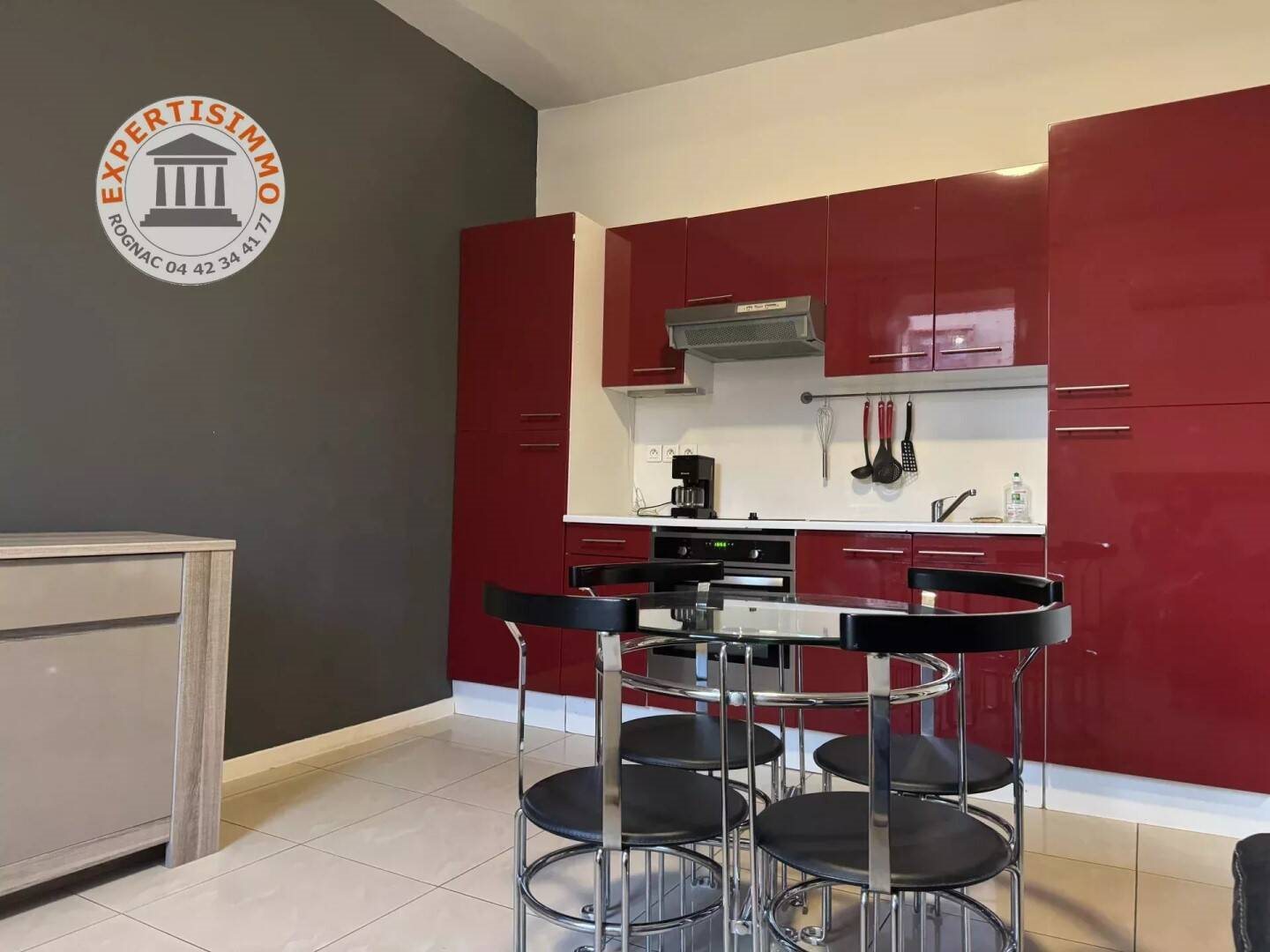 L'agence Expertisimmo vous propose en exclusivité ce très beau T2 Meuble d'environ 30 m², idéalement situé en plein centre ville de Rognac et à deux minutes à pied de la gare. Situé au 1er étage (sans ascenseur), l'appartement bénéficie d'une pièce de vie bai...