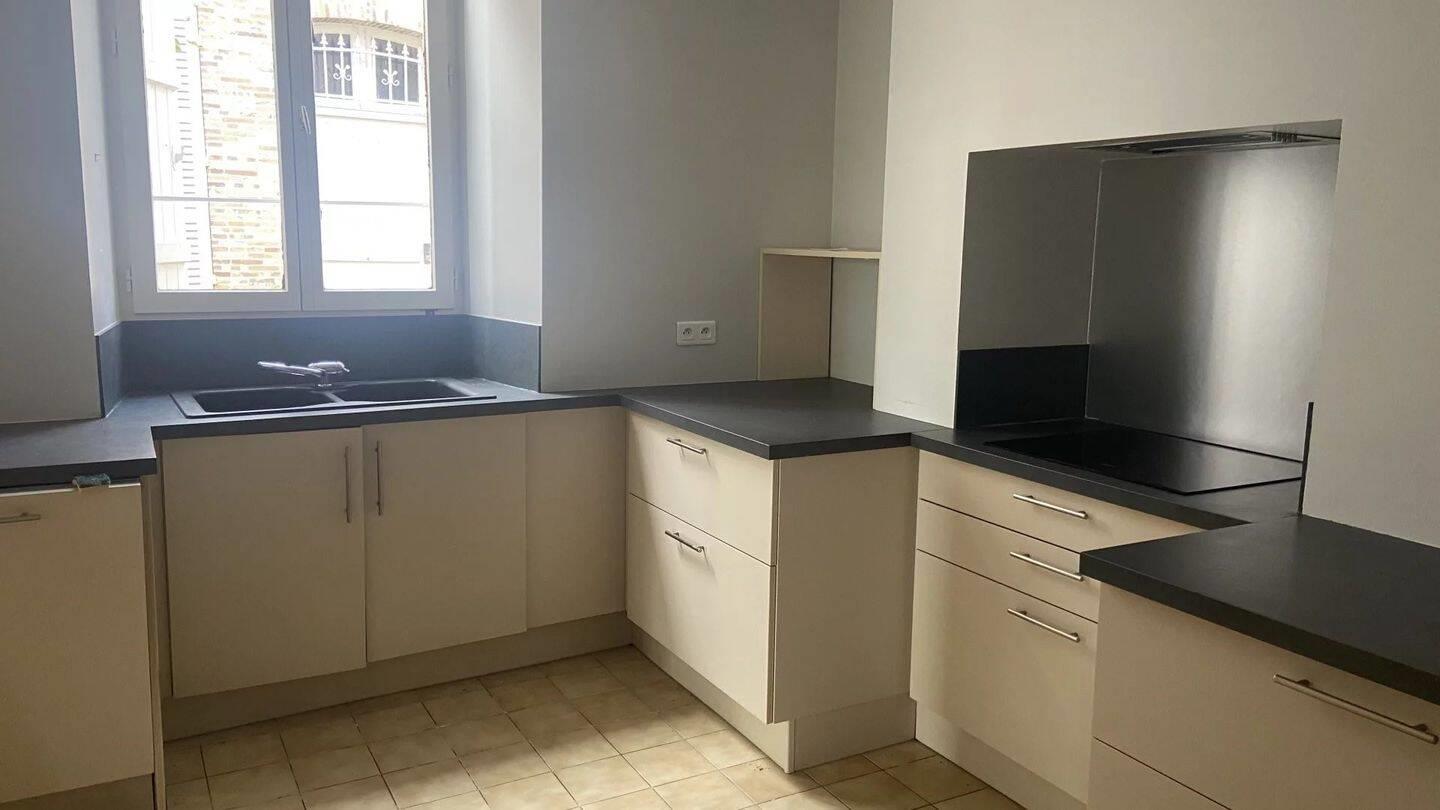 A louer 780€/mois C.C. Maison comprenant une entrée carrelée, une cuisine de 10.40m² aménagée, équipée et carrelée avec pièce de stockage, un séjour carrelé avec cheminée insert de 28.40m², une salle d'eau avec Wc A l'étage : 3 chambres parquetées de 13m², 17,60m² et 18.80m², une pièce a usage de dressing de 8m², une salle d'eau, Wc suspendu avec lave mains. Chauffage électrique. Double vitrage au rdc et simple vitrage a l'étage. Tout a l'égout