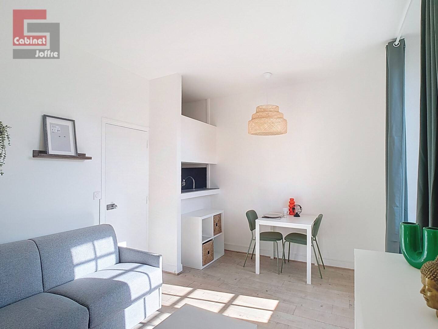 Studio Meuble en partie refait, dans la résidence "le Mansart" vue Château, au 1er étage de ce bâtiment avec ascenseur. Entrée avec placard, salle d'eau avec wc, kitchenette équipée (plaque, four, réfrigérateur, machine à laver), ouverte sur séjour lumineux. Pi...