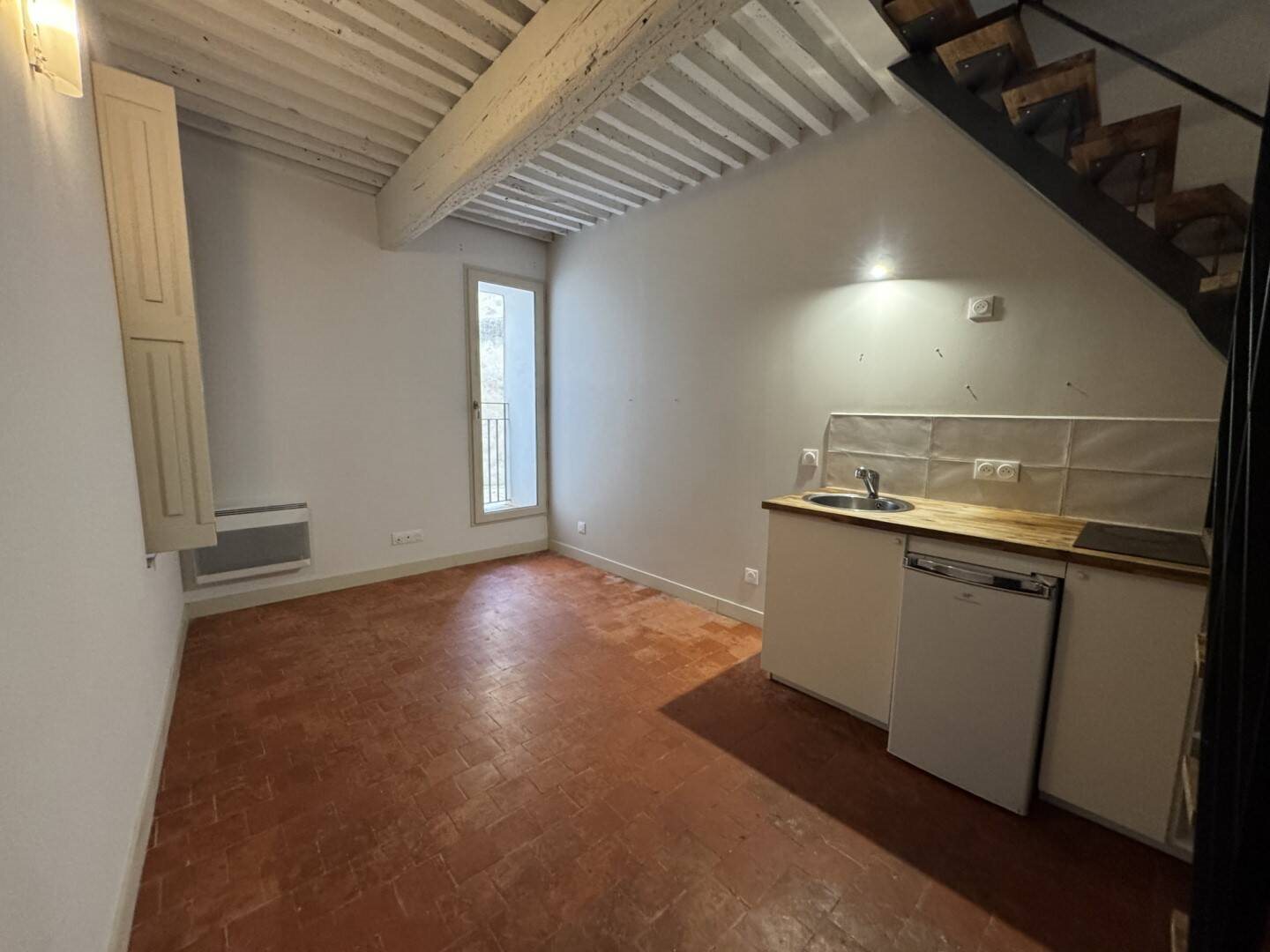 Location appartement T1 / Studio en duplex sur la commune de Pertuis, proche des commerces, écoles et bus, à 15 mn au nord d'Aix en Provence. Cet appartement T1 / Studio en duplex de 23,16 m² en location sur Pertuis, se compose d'une cuisine équipée ouvrant sur la pièce à vivre. A l'étage, une chambre et une salle d'eau avec Wc. Disponible immédiatement. Le loyer plafonné s'élève à 217,69 € / Mois dont 10 € de provision pour charges (entretien et consommations électriques des parties communes, ordures ménagères). Dépôt de garantie demandé 207,69 €. Honoraires location 254,76 € dont 69,48 € de rédaction d'états des lieux. Dossier locataires soumis aux assurances loyers impayés et au respect du plafond Anah de ressources, plafonné à 26 460 € / An pour une personne seule et 35 338 € / An pour un couple. Classe Energie : D et Classe Climat : B. Mandat Vz. Ce bien vous est proposé par l'agence Cryza Immobilier Peyrolles En Provence - Luberon 755 H Avenue Charles de Gaulle, 13860 Peyrolles en Provence Contact