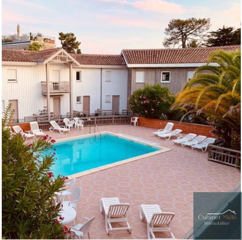 Le cabinet Mélé vous propose cet agréable appartement dans une résidence sécurisée avec piscine située à quelques mètres de la plage du Canon, à proximité de l'océan et des commerces. Au rez-de-chaussée, vous découvrirez une entrée ouvrant sur un salon/séjour lumineux avec cuisine, donnant sur terrasse de 17m², idéale pour profiter des beaux jours. A l'étage, l'espace nuit se compose d'un dégagement, deux chambres, salle de bain et un Wc séparé. Une place de parking privative vient compléter ce bien.