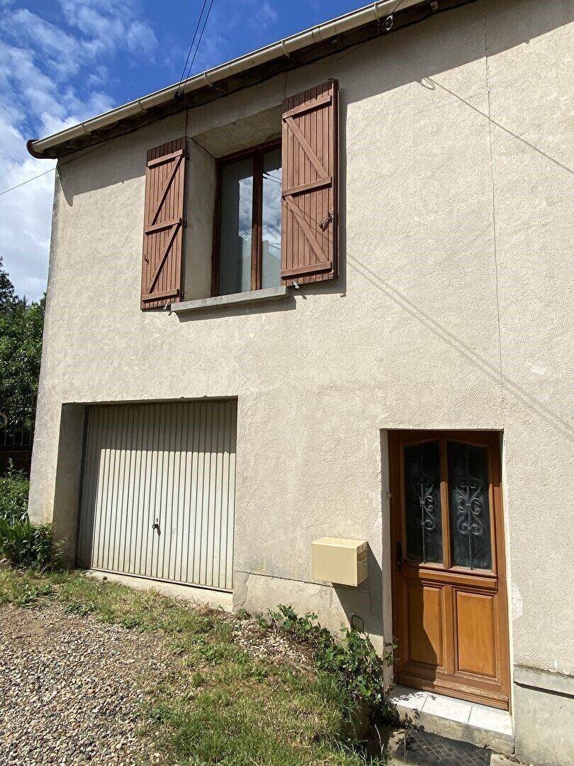 Une maison comprenant entrée, salle de bains avec Wc, garage. Au 1er étage : séjour avec cuisine ouverte, une chambre ou salon. Dans les combles, une chambre. Jardin.