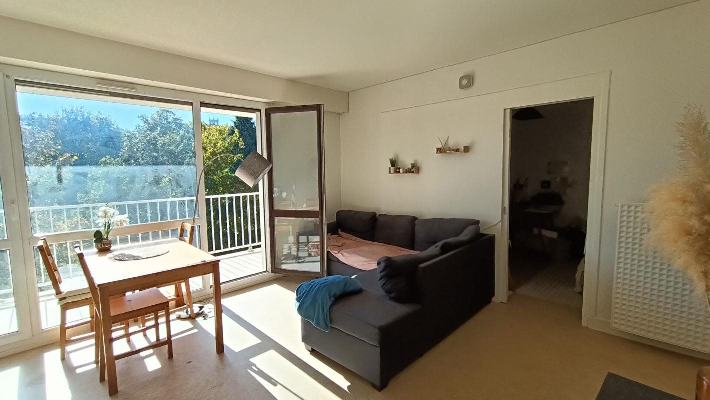 Pour investisseur, parc pasteur, dans petite résidence, agréable appartement de deux pièces principales comprenant une entrée avec placard, un séjour avec grand balcon plein sud sans vis à vis, une cuisine ouverte aménagée, une chambre, une salle de bains avec wc. Chauffage individuel. Loyer 545,88 euros charges comprises. Copropriété de 23 lots - dont 23 lots habitation. (Pas de procédure en cours). Charges annuelles : 889 euros.