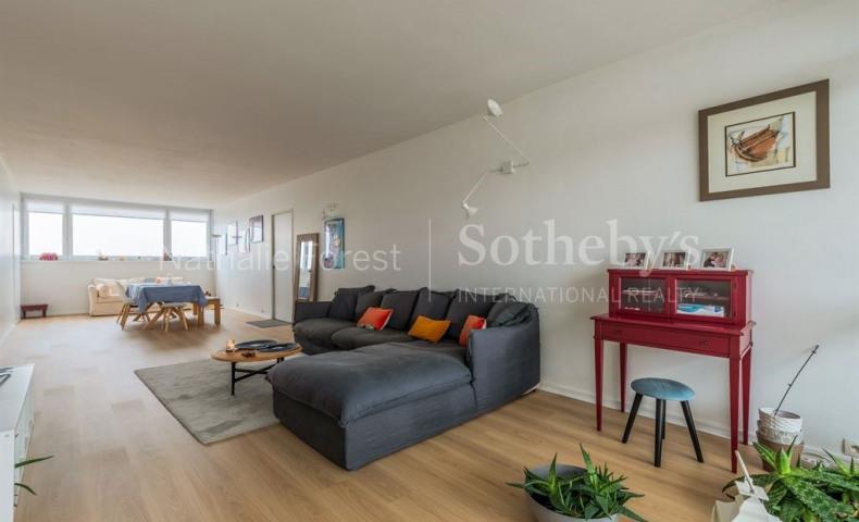 Bel appartement au 12ᵉ et dernier étage d'une résidence sécurisée. Cet appartement lumineux se compose d'une entrée avec toilettes, d'un cellier, d'un séjour spacieux avec salle à manger de 47m2 s'ouvrant sur une grande terrasse, et d'une cuisine équipée séparée. La partie nuit offre 3 chambres avec placards (12 m², 18 m², 12 m²), dont une suite parentale avec salle de douche, ainsi qu'une salle de bains avec rangements. Une cave (5/6 m²) et possibilité de louer une place de parking en sus du prix (25 000€).