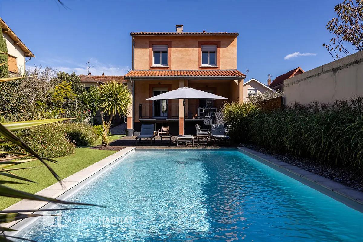 Située au coeur du quartier recherché des Sept Deniers, dans un environnement résidentiel calme et verdoyant à proximité immédiate des commodités (écoles, commerces, Stade Toulousain, Airbus, aéroport de Blagnac), cette maison individuelle non mitoyenne offre un cadre de vie idéal pour une famille.D'une surface habitable d'environ 115 m², elle se compose au rez-de-chaussée d'une entrée avec toilettes et rangements, d'un séjour lumineux ouvrant sur une terrasse et un agréable jardin, ainsi que d'une cuisine moderne entièrement équipée.À l'étage, l'espace nuit comprend trois chambres, un bureau pouvant servir de quatrième chambre, et une salle d'eau récente avec douche à l'italienne, double vasque et toilettes.Les combles ont été isolés, et la maison bénéficie d'un système de climatisation réversible pour un confort optimal en toutes saisons.Le terrain de 355 m², parfaitement entretenu, accueille une piscine 4x8 m, une terrasse en bois et un jardin arboré avec arrosage automatique. Un garage fermé et un sous-sol complètent cet ensemble.Avec ses prestations de qualité (parquet en chêne massif, double vitrage, électricité aux normes, piscine) et son emplacement d'exception, cette maison représente un bien rare sur le secteur, alliant confort, tranquillité et proximité des grands axes et du centre-ville toulousain.