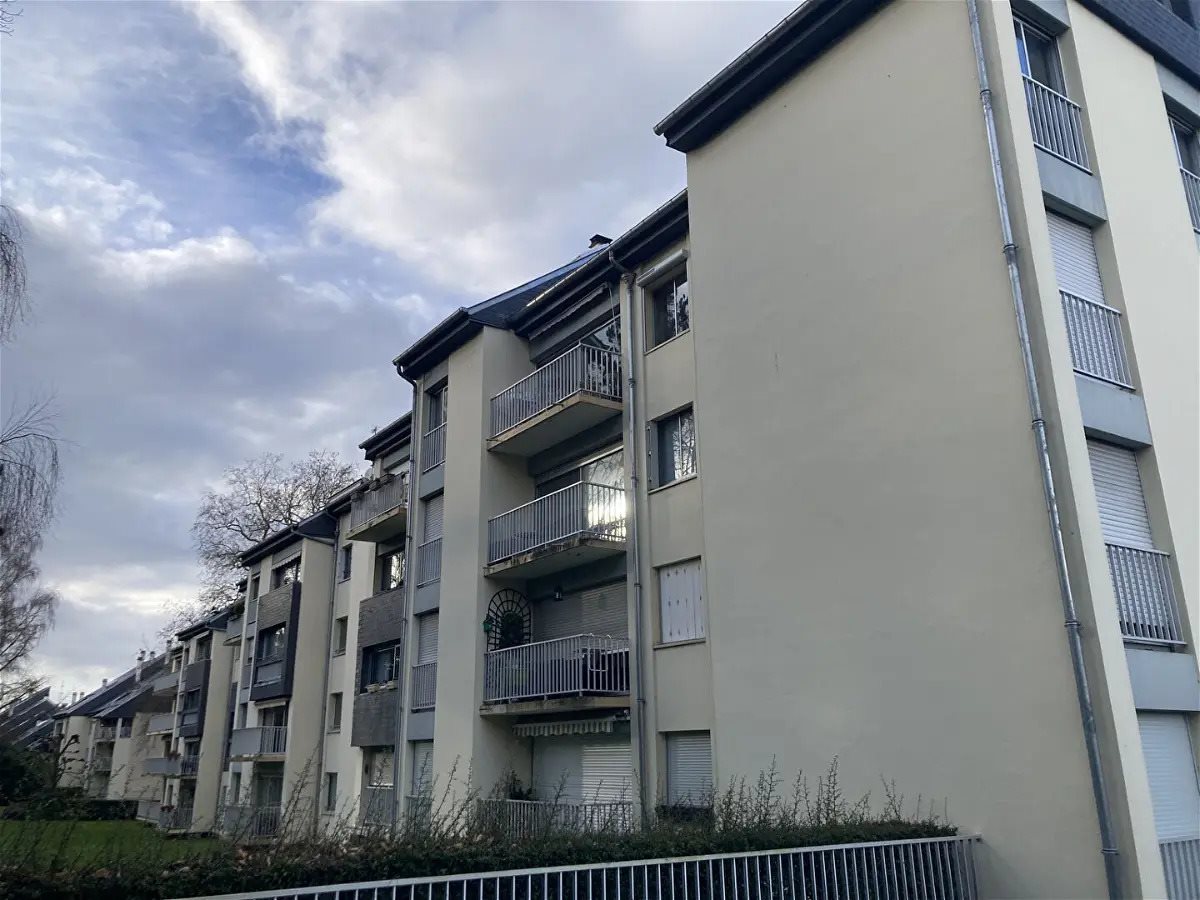 Lisieux. Dans une résidence avec gardien, espace vert et ascenseur, bel Appartement de 96.64 m² comprenant entrée, séjour-salon avec balcon, cuisine aménagée, dégagements 3 chambres, salle de douche et salle de bains. Une cave et un garage.