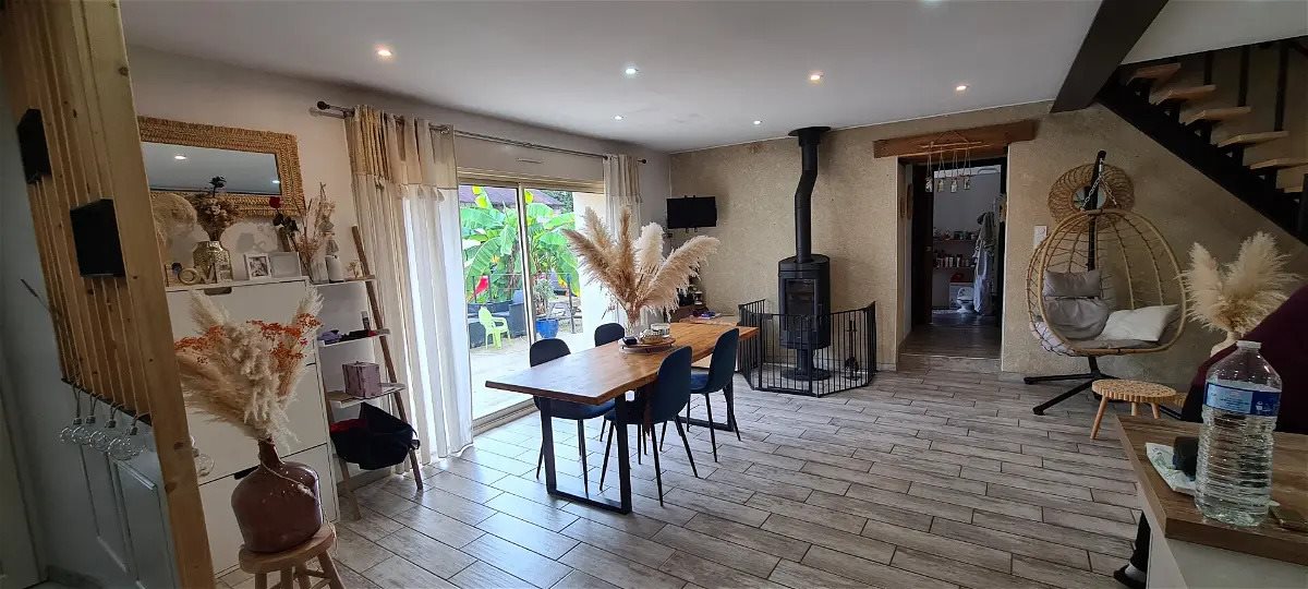 Bussy En Othe Coeur De Village - Maison ancienne avec dépendances composée d'entrée vaste séjour-salon avec baie vitrée donnant sur une terrasse, et avec poele à bois, cuisine ouverte aménagée et équipée, 1 chambre et une salle de bains avec coin buanderie. A l'étage : un palier/bureau desservant : 2 chambres et 1 dressing, et 1 chambre parentale avec dressing et salle de douche. Garage double, atelier, un auvent ouvrant sur le jardin, cuisine d'été. Le tout en bon état. Climatisation réversible, chauffage électrique + Bois.