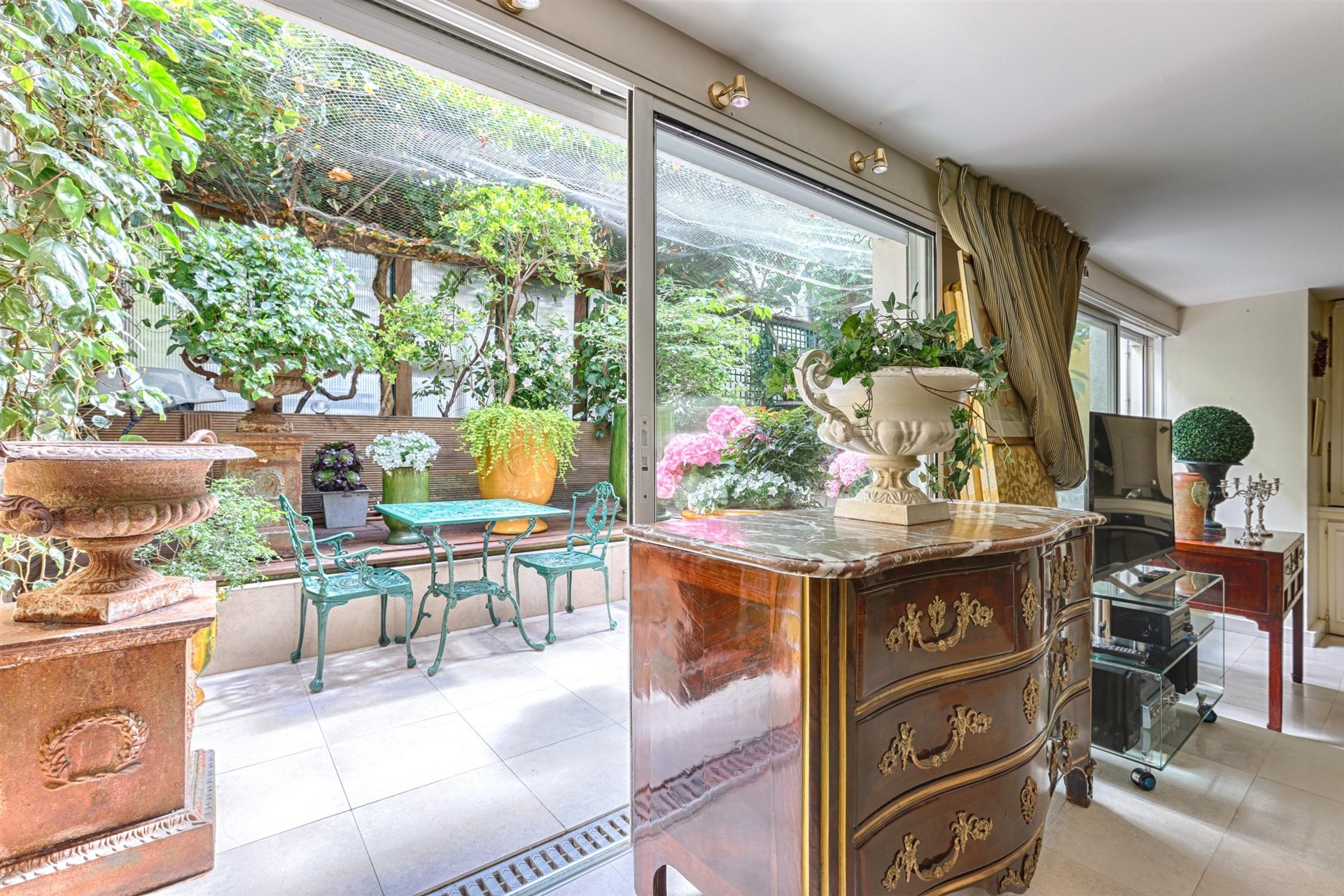Paris 14 - Alésia - Niché à l’arrière d’une petite copropriété, à l’abri des regards et du tumulte urbain, comme une maison, cet appartement de standing bénéficie d'un charme unique et d'une qualité de vie remarquable. Rénové avec des matériaux de qualité, ouvert sur une grande terrasse arborée, il se compose d’un double séjour de réception d’environ 40 m² avec cuisine américaine aménagée et équipée, de deux chambres, d’une salle d’eau et d’une salle de bains. L’Appartement dispose également de deux toilettes indépendantes et d’une grande buanderie. Le garage privatif, accessible directement depuis l’appartement, offre un confort et une indépendance rares en milieu urbain.La surface actuellement déployée sur 108 m², comprend 74 m² loi Carrez et 88,70 m² habitables et allie de beaux volumes, des prestations de qualité et une excellente fonctionnalité. Ce bien rare au charme indéniable séduit par son calme absolu, son atmosphère chaleureuse et sa proximité immédiate des commerces et des transports.L’ESPACE Extérieur : en retrait de la copropriété, à l’abri des regards et de toute nuisance sonore, la magnifique terrasse de 40 m², aménagée avec de superbes végétaux, constitue un véritable havre de paix, parfaitement intégré dans la continuité du séjour.TERRASSES Et Jardins - Jean-Claude Vignaud