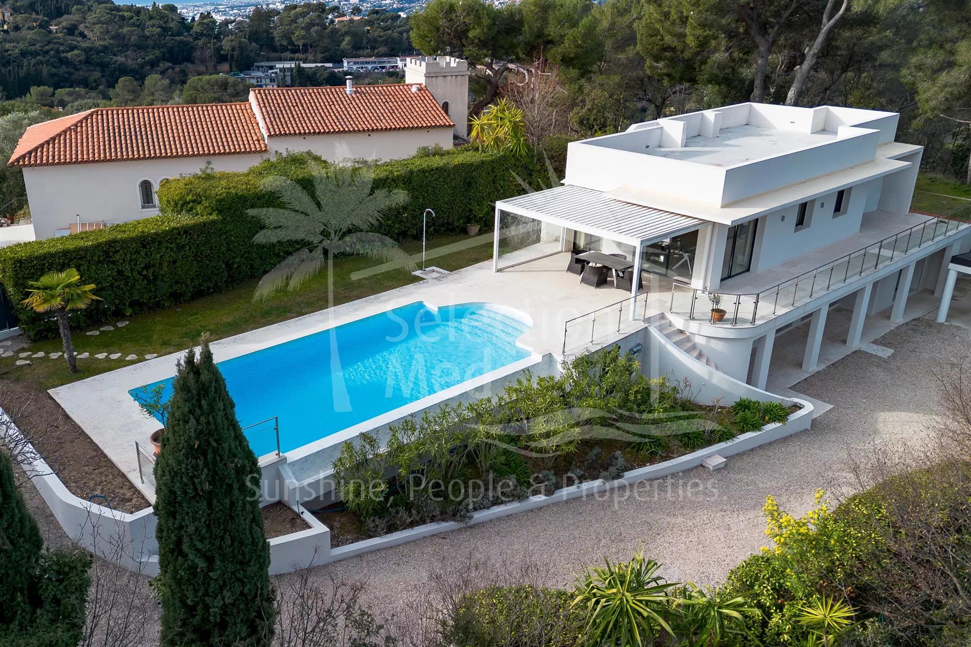 Exclusivité! Découvrez cette propriété d'exception offrant confort, tranquillité et un cadre naturel exceptionnel. La villa dispose d'un élégant séjour avec cuisine semi-ouverte, donnant sur une terrasse agrémentée d'une piscine. À ce niveau, vous trouverez également une chambre principale avec salle de bains attenante. La propriété comprend quatre chambres confortables supplémentaires, chacune avec sa propre salle de bains, ainsi qu'une pièce polyvalente pouvant servir de cinquième chambre ou de bureau. À l'extérieur, la piscine offre un cadre idéal pour la détente, tandis que le toit-terrasse propose une vue imprenable à 360 degrés sur la Méditerranée. Les commodités pratiques incluent un carport et plusieurs places de stationnement sur la propriété. Récemment rénovée selon des standards exceptionnels, cette villa est idéalement située à quelques minutes des commerces, des plages et des villes de Nice et Villefranche-sur-Mer. L'emplacement est parfait pour de longues promenades et randonnées à travers des zones forestières naturelles pittoresques. Que vous recherchiez une résidence familiale principale, une résidence secondaire pour profiter de la Côte d'Azur, ou un investissement locatif de prestige, cette propriété offre une opportunité remarquable. À voir absolument pour ceux qui recherchent sérénité et confort sur la Côte d'Azur. Diagnostic en cours
