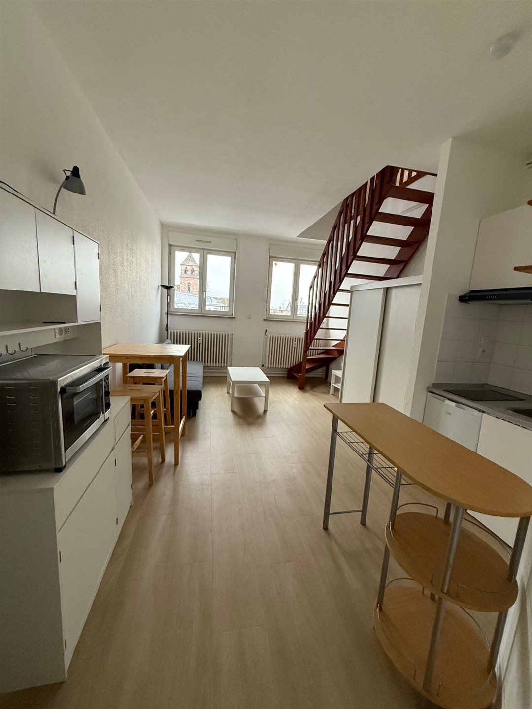 Strasbourg - rue du 22 Novembre - très beau duplex meublé de 39m2 habitable, qui vient tout juste d'être rénové et remeublé. Il est situé au 5ème étage avec ascenceur et se compose d'un séjour avec kitchenette équipée et à l'étage un espace chambre et un espace nuit ainsi qu'un salle de bain avec baignoire et WC. Pour plus de renseignements et pour une visite, contactez Valérie Loyer : 800€ + 90€ de charges comprenant le chauffage et l'eau froide. Honoraires d'agence : 507 € (à la charges locataires dont 117€ d'état des lieux) Dépôt de garantie : 2 mois de loyer hors charges soit 1600€