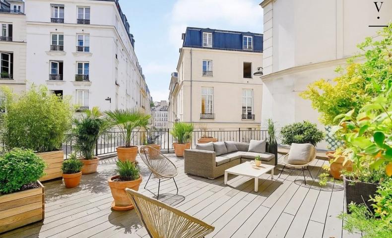 Marais 3P Terrasse Au cur du Marais, entre la rue de Bretagne et le Musée Picasso, nous vous proposons un superbe appartement de 60 m² s'ouvrant sur une spectaculaire terrasse de plus de 50 m² exposée sud-est. Ce lieu refait par un architecte se compose d'une grande pièce de réception donnant sur la terrasse et disposant d'une cuisine pouvant s'ouvrir sur le séjour. Il dispose également de deux chambres, d'une salle de douche et d'un Wc indépendant. Ce bien unique vous séduira par ses volumes généreux et son incroyable terrasse.