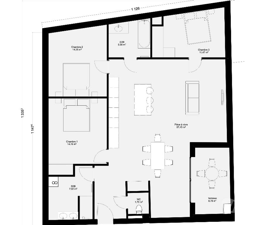 St Ferjeux - Appartement 2ème et dernier étage avec terrasse, Dans maison de maitre en pierres et à taille humaine., Création de logement au deuxième et dernier étage. Vue dégagée, expo parfaite. Calme !!, Une surface de 120m2 vendue brute ou clef en main., La version brute comprend:, -Les dalles béton, -Les enveloppes SAD/séparations des logements, -Portes palières, -Les ouvertures pour les fenêtres et Baies vitrées, -Les menuiseries/Velux, -Les terrasses suspendues et intégrées dans la toiture, -Les arrivées Edf (compteurs), eau, -Les évacuations en attentes pour les Eu, Prix surface brute: 160.000€, Prix clé en main: 228.000€ hors cuisine et placards aménagés, Possibilité de changer l'aménagement proposé (Hors pièces d'eau), Parkings extérieurs en sus: 1500€, Syndic bénévole, pas d'espace communs sauf cage d'escalier., Dossiers et Rdv sur demande, Agence s'abstenir, Marchand de biens avec conditions suspensives s'abstenir.